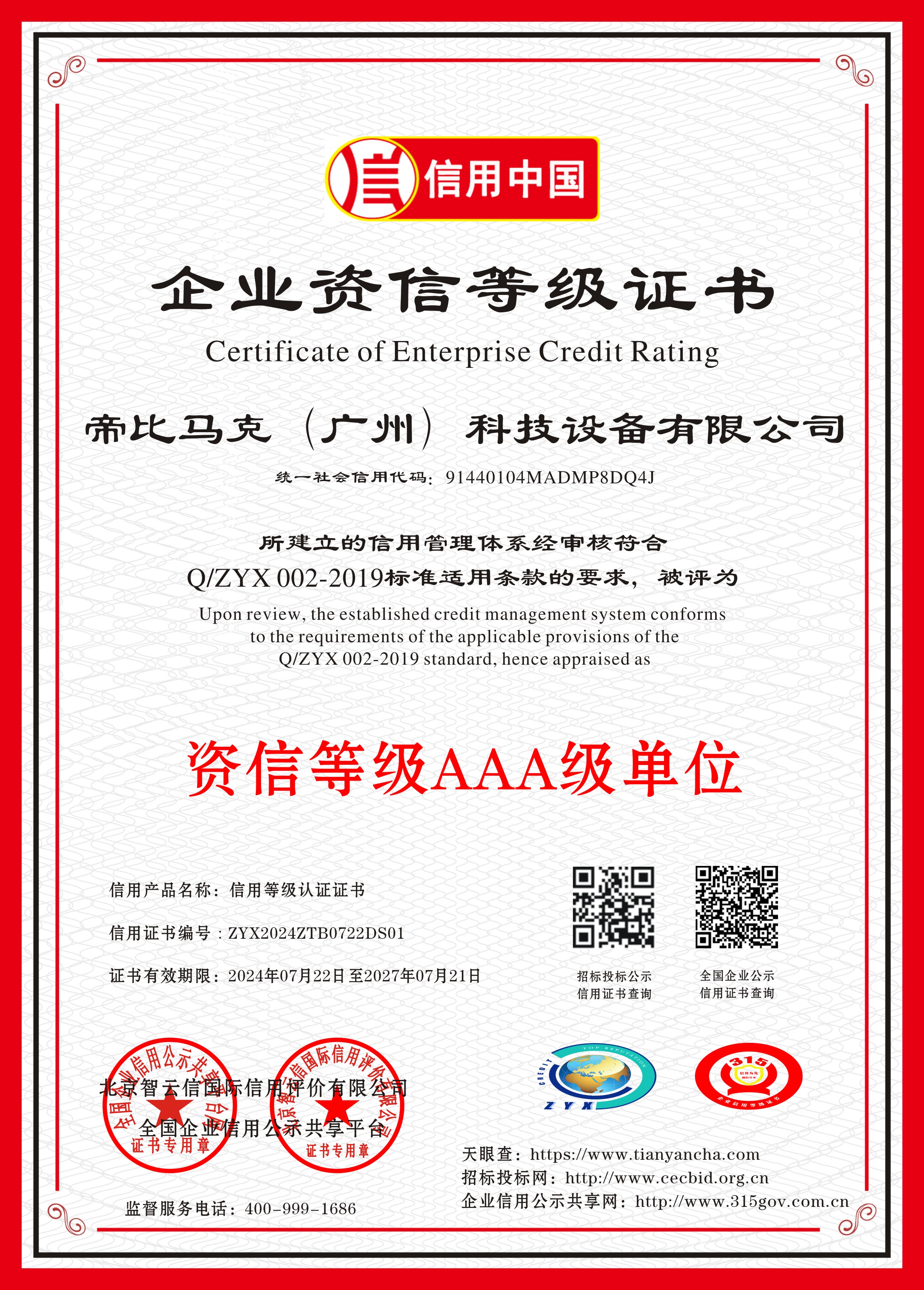 重合同守信用AAA等級